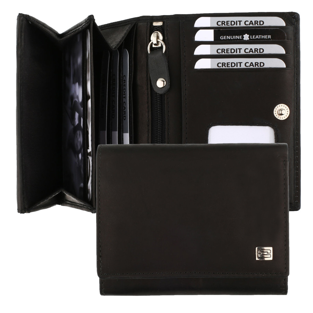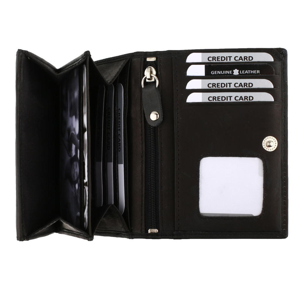 - Belső elrendezés a rendszerezésért: 1 papírpénztartó, 1 cipzáras aprópénztartó, 7 kártyatartó, 1 fényképtartó, 1 cipzáras zseb