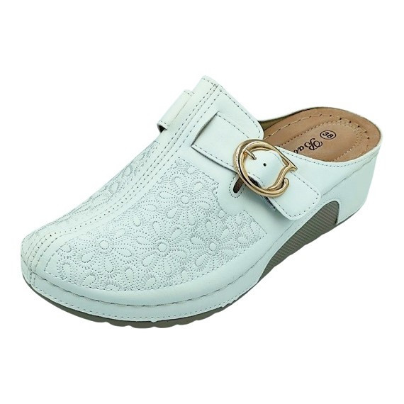 Divatos női klumpa virágmintás felsőrésszel – állítható csatos, kényelmi talppal fehér