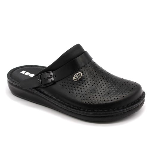 300 M Leon férfi munkavédelmi bőr klumpa – csúszásmentes, sarokpántos fekete