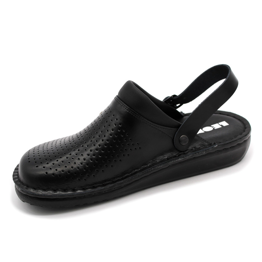 300 M Leon férfi munkavédelmi bőr klumpa – csúszásmentes, sarokpántos fekete
