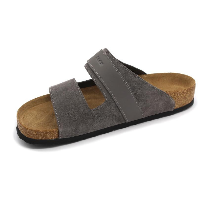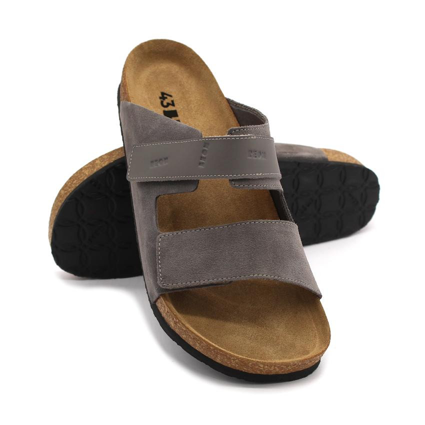 4704 LEON Férfi bőr papucs dupla tépőzáras parafa talpon szürke