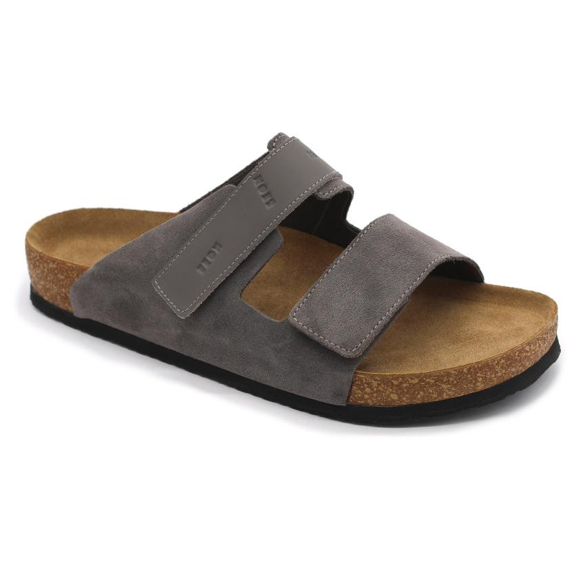 4704 LEON Férfi bőr papucs dupla tépőzáras parafa talpon szürke