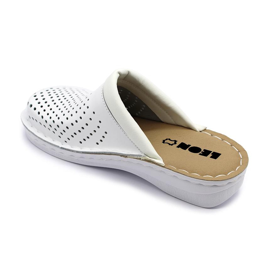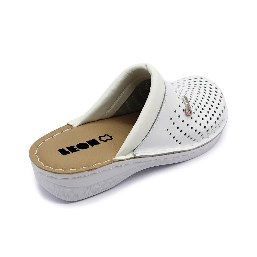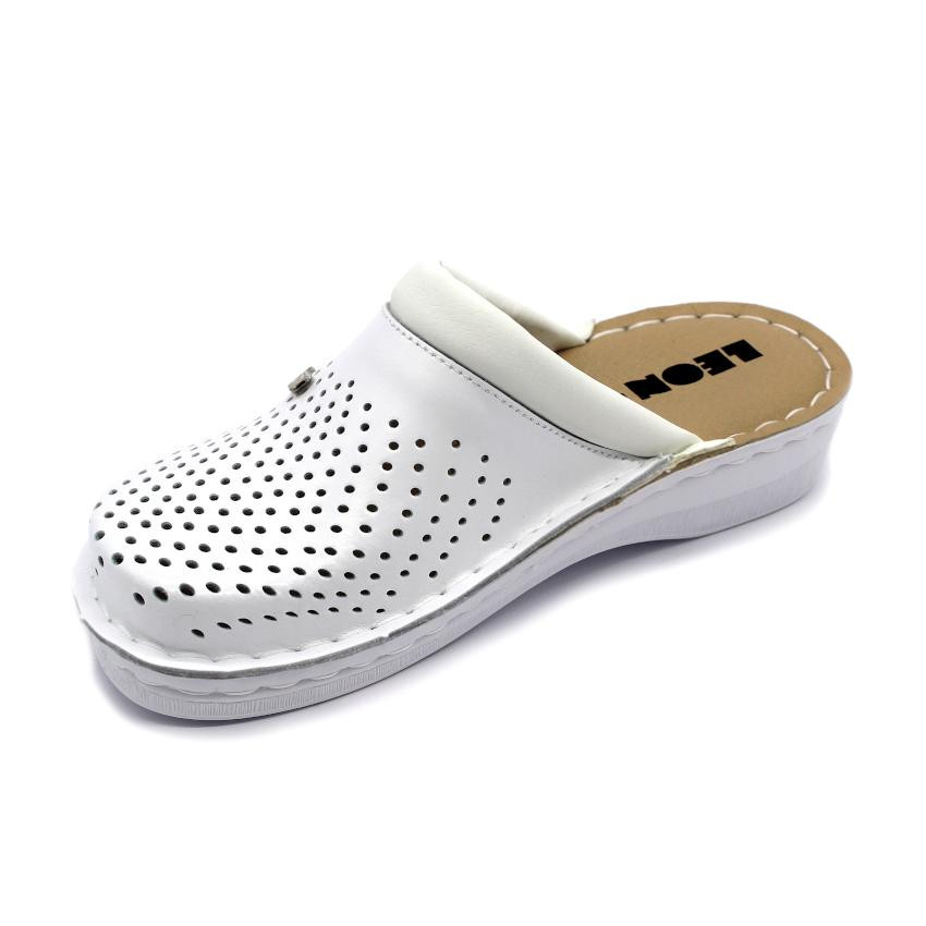 A V262 LEON Comfort női bőr klumpa kiváló választás azok számára, akik egész napos kényelmet és praktikus viseletet keresnek. A letisztult fehér kialakítás és a perforált felsőrész modern megjelenést biztosít, miközben segíti a láb megfelelő szellőzését.