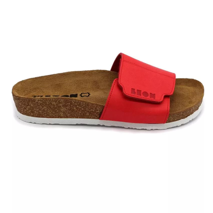 4022 LEON bőr egypántos női papucs anatómiai talpbetéttel I piros