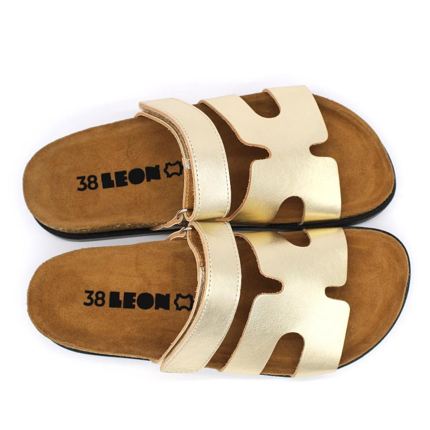 7032 Leon Divatos női bőr papucs – anatómiai talppal, arany színű pánttal
