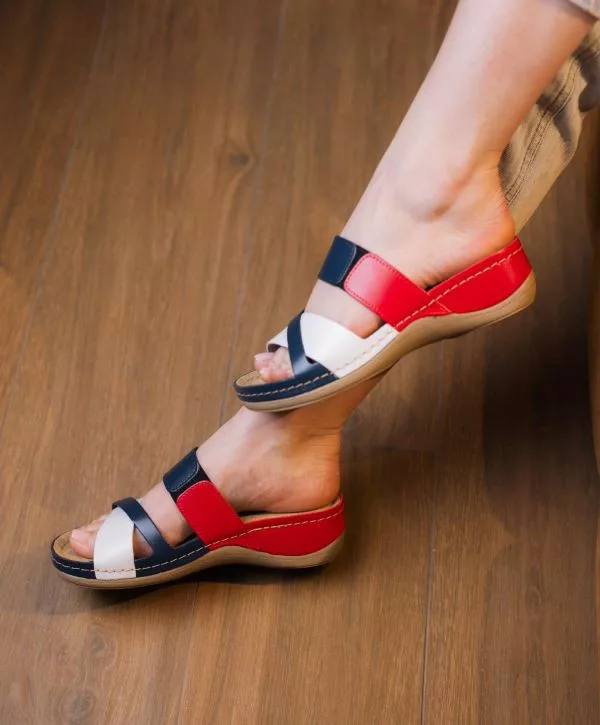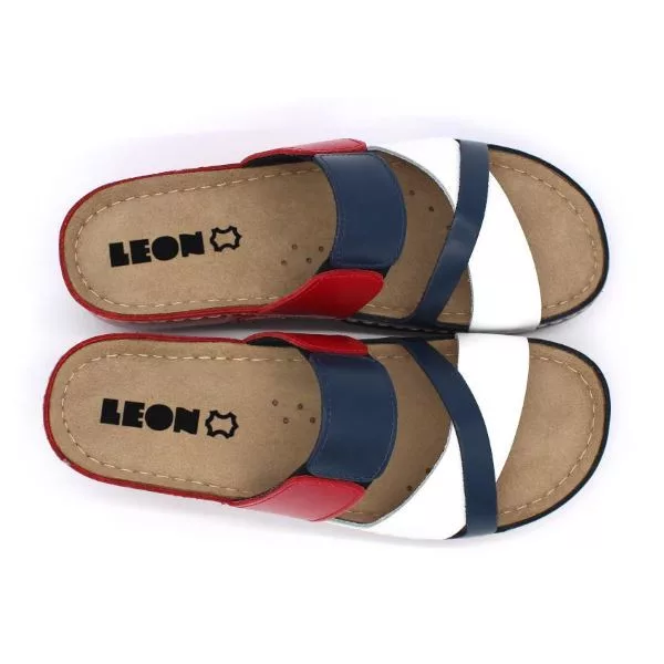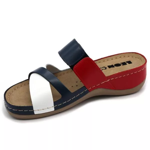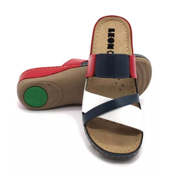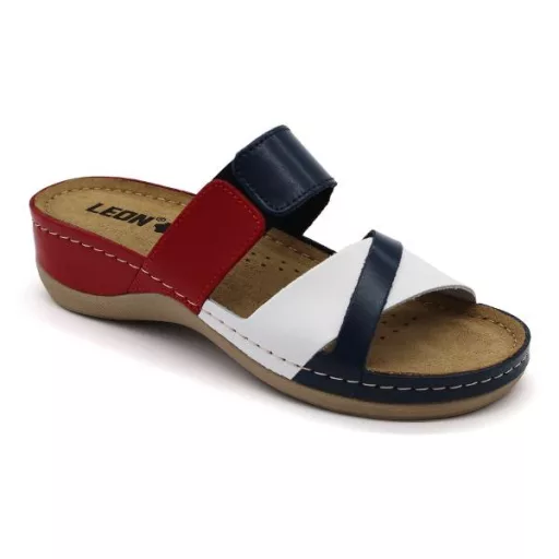 - Típus: 909 LEON csinos női zselés bőr gyógypapucs I fehér-piros-kék