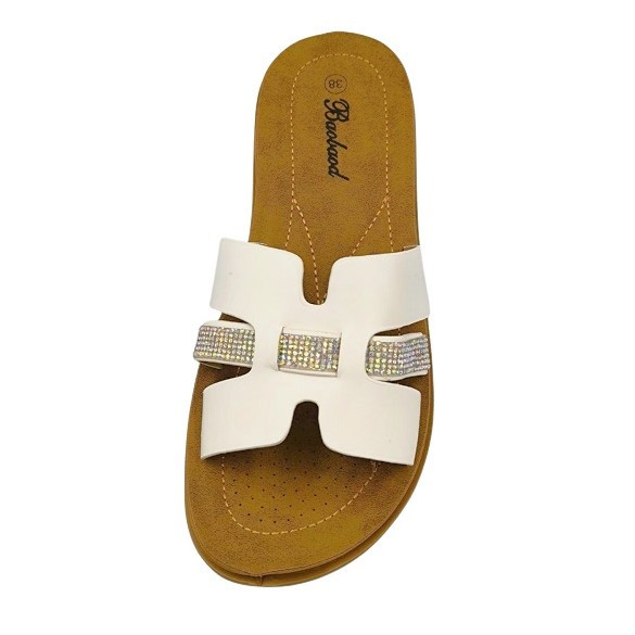 MARINA trendi női lapos talpú papucs- kényelmes, divatos nyári papucs csillogó díszítéssel.