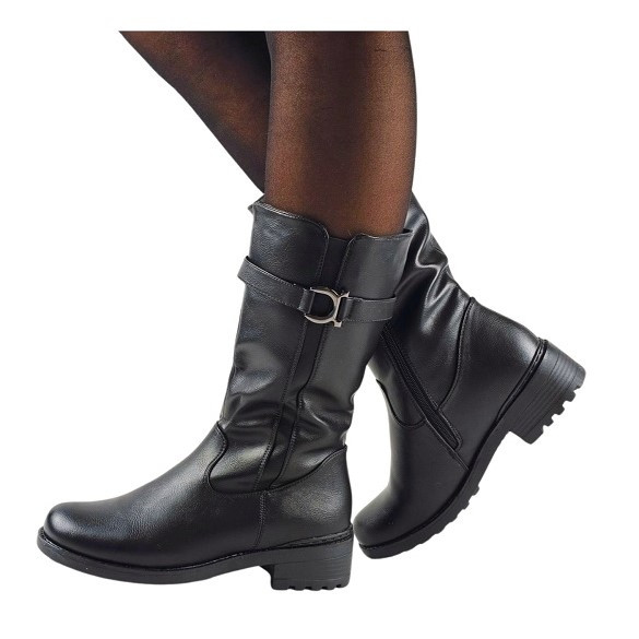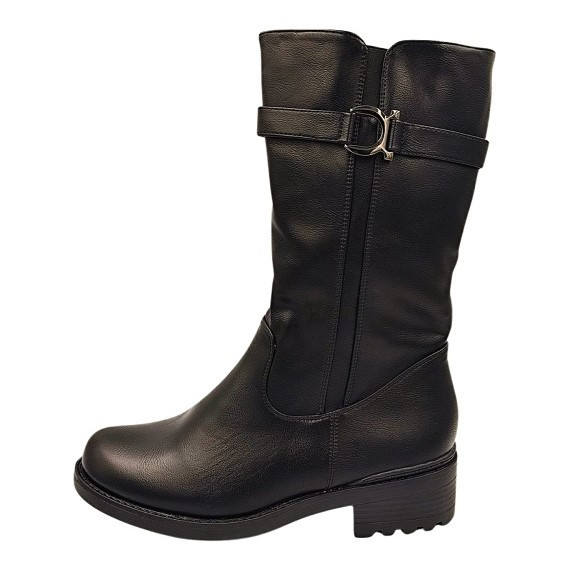 VIRGINIA középmagas, gumírozott, cipzáras, bélelt női csizma fekete
