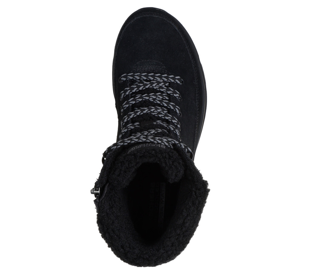 Skechers 144206 fekete női velúr bakancs – meleg, kényelmes és stílusos a téli napokra