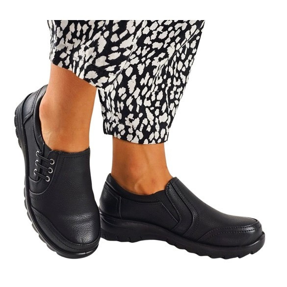 OXFORD kollekció gumibetétes, bőr talpbetétes női félcipő fekete