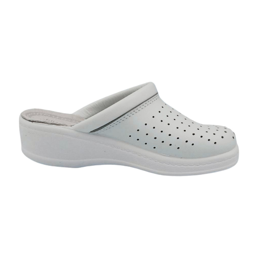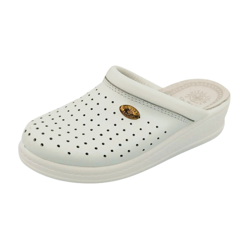 Sanital Light 350 fehér színű gyógyklumpa egy valódi klasszikus. A klumpa használata számtalan előnnyel jár. Segíti az izmok erősödését és lazítását, enyhíti a lábikra fáradást,anatómiai talpbetétje által pedig fokozza a vérkeringést is. Az érrendszeri megbetegedések, és a porckopás is megelőzhető az anatómiai talp betétes, emelt talpú, bőr klumpa, használatával. A talp könnyű, rugalmas, nagy felületen tapad a talajhoz. Felsőrésze, lyukacsos kíválóan szellőzik, ezáltal nem fülled be a láb. Azok, akik hosszú órákon át állnak, hasznosíthatják a klumpa előnyeit, hiszen a lábfej megerőltetése csökkenthető. A termék tartósságát a kitűnő, kopásálló anyagok biztosítják.