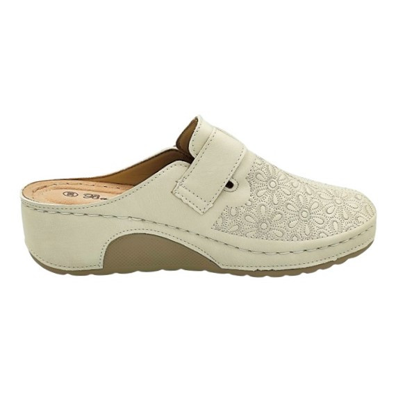 Divatos női klumpa virágmintás felsőrésszel – állítható csatos, kényelmi talppal beige