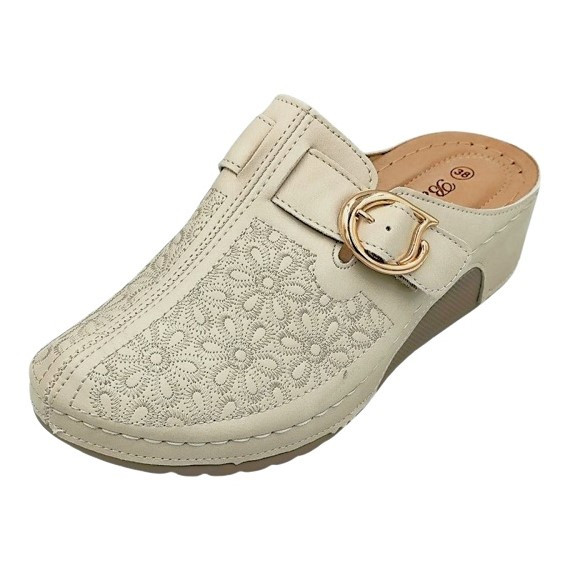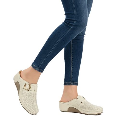 Divatos női klumpa virágmintás felsőrésszel – állítható csatos, kényelmi talppal beige