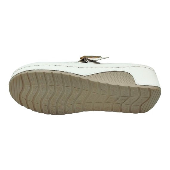 A lábfej bősége a praktikus csattal könnyedén állítható, így tökéletesen illeszkedik a lábhoz. A puha, szivacsos talpbetét extra kényelmet nyújt, míg az 5 cm-es sarok ideális tartást biztosít egész napos viselet során is.