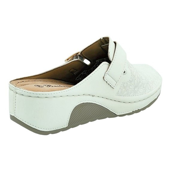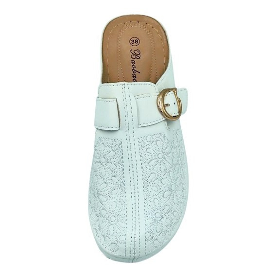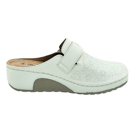 Divatos női klumpa virágmintás felsőrésszel – állítható csatos, kényelmi talppal fehér
