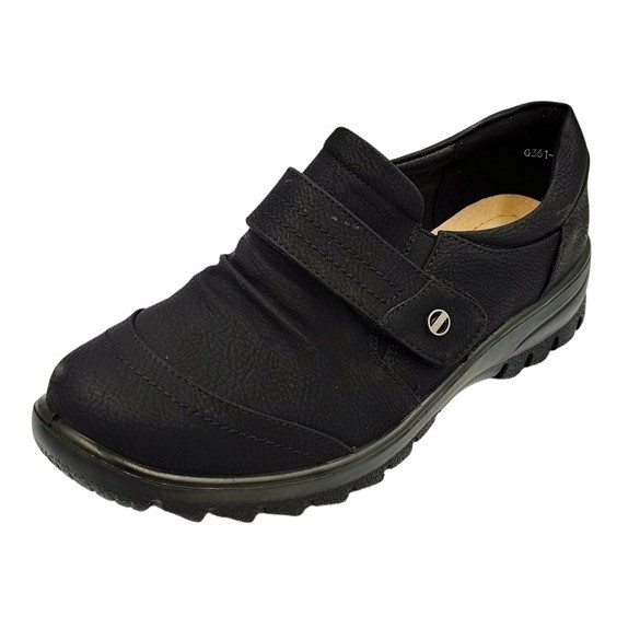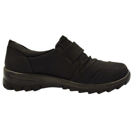 MILANO kollekció gumírozott, bőr talpbetétes női kényelmi cipő fekete
