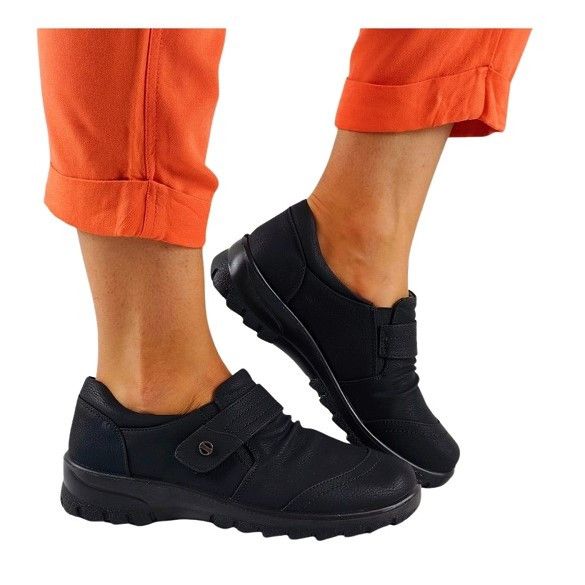 MILANO kollekció gumírozott, bőr talpbetétes női kényelmi cipő fekete