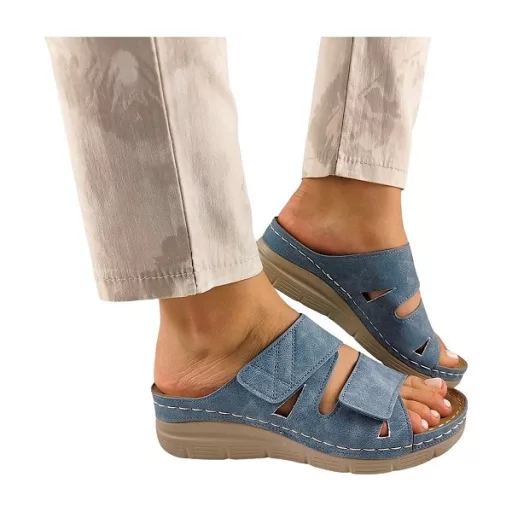 Világoskék árnyalata friss, nyárias hatást kelt, és jól illik világos nadrágokhoz, szoknyákhoz, ruhákhoz egyaránt. A visszafogott, mégis üde színvilág miatt a papucs hétköznapi viselethez, otthonra vagy könnyed sétákhoz is praktikus választás.