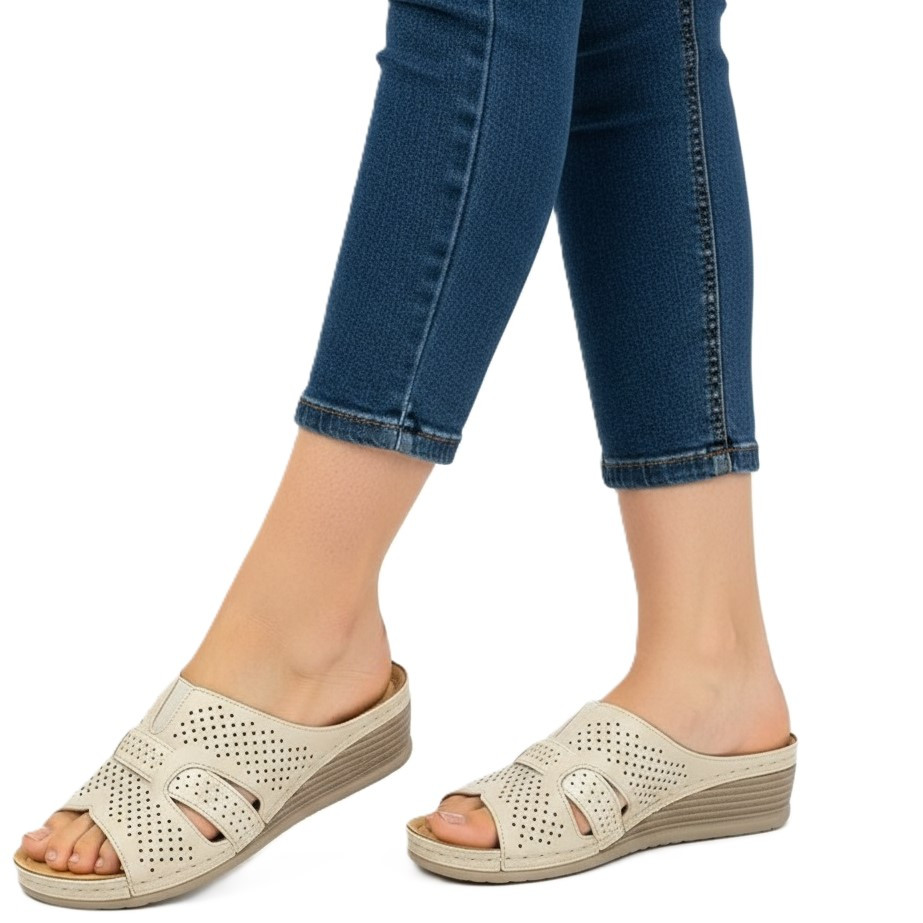 Az Valeria női papucs nőies, mégis praktikus választás a mindennapokra. A perforált felsőrész finom, szolid csillogó részletekkel teszi különlegessé, így egyszerre visszafogott és elegáns hatású.