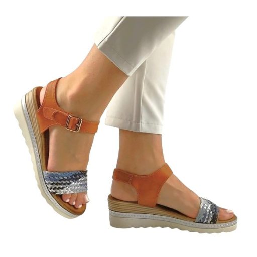 BRAIDS telitalpú női szandál fonott pántokkal | barna-ezüst-kék