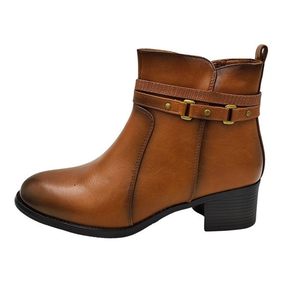 PATRICIA tömzsi sarkú, bélelt elegáns női bokacsizma konyakbarna