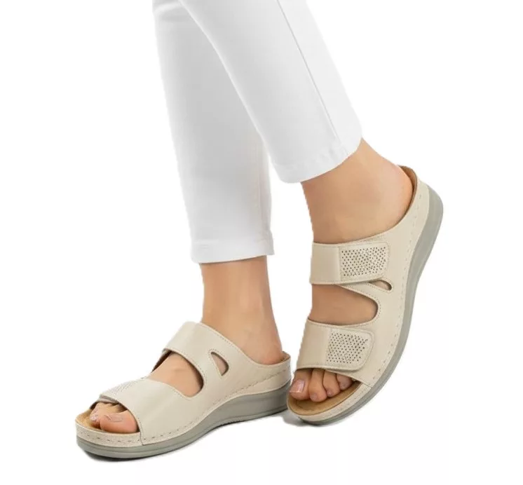 - Típus: MYKONOS dupla tépőzáras női papucs beige