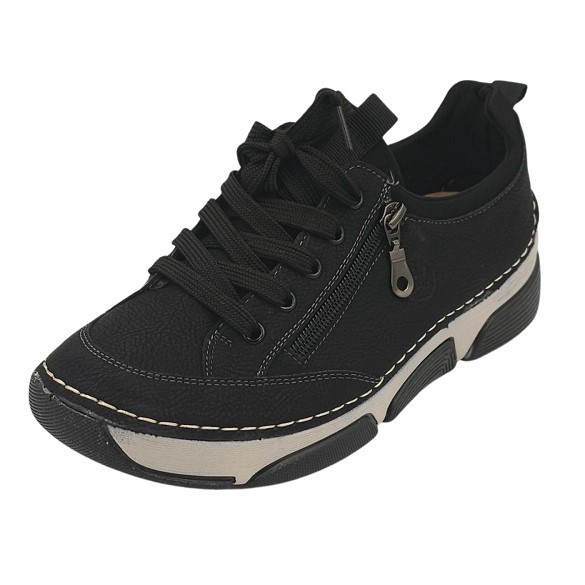 BERGAMO kollekció fűzős, bőr talpbetétes, cipzárdíszes női őszi cipő fekete