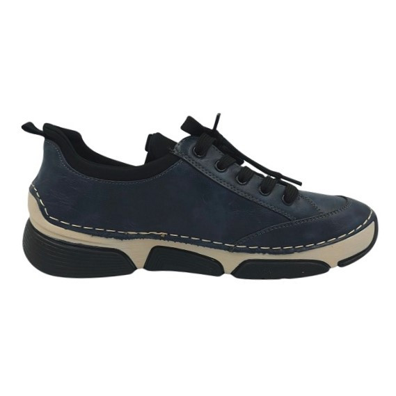 BERGAMO kollekció fűzős, bőr talpbetétes, cipzárdíszes női őszi cipő farmerkék