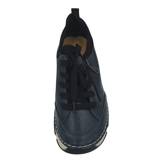 BERGAMO kollekció fűzős, bőr talpbetétes, cipzárdíszes női őszi cipő farmerkék