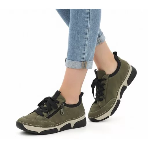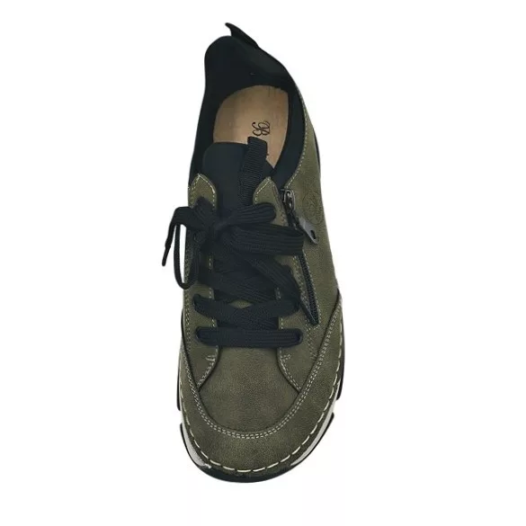 BERGAMO kollekció fűzős, bőr talpbetétes, cipzárdíszes női cipő zöld