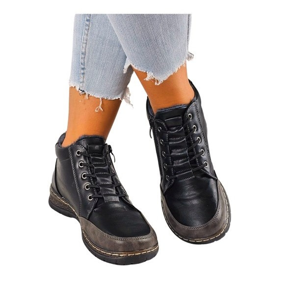 CHILL bélelt női kényelmi bokacipő gumis fűzővel fekete