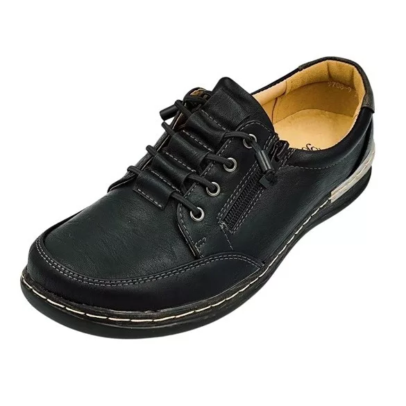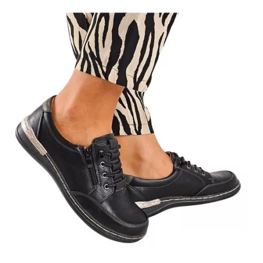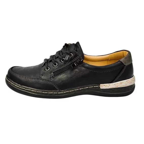 VIENNA kollekciós kényelmi cipő, bőr talpbetéttel, gumis fűzővel és cipzárral fekete