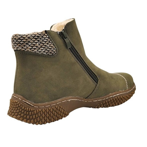 OREGANO bélelt, dupla cipzáras női olivazöld bokacipő
