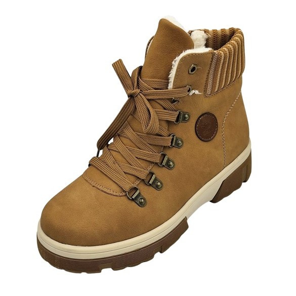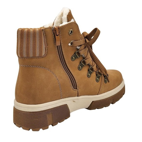 CRUSH fűzős, cipzáros vastag talpú bélelt női bakancs camel