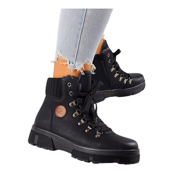 CRUSH fűzős, cipzáros vastag talpú bélelt női bakancs fekete
