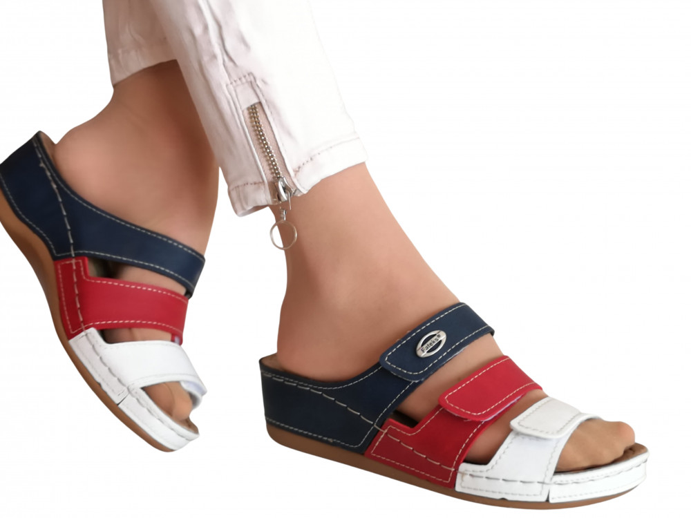Anatomic biokomfort papucs tripla tépőzárral fehér-piros-kék